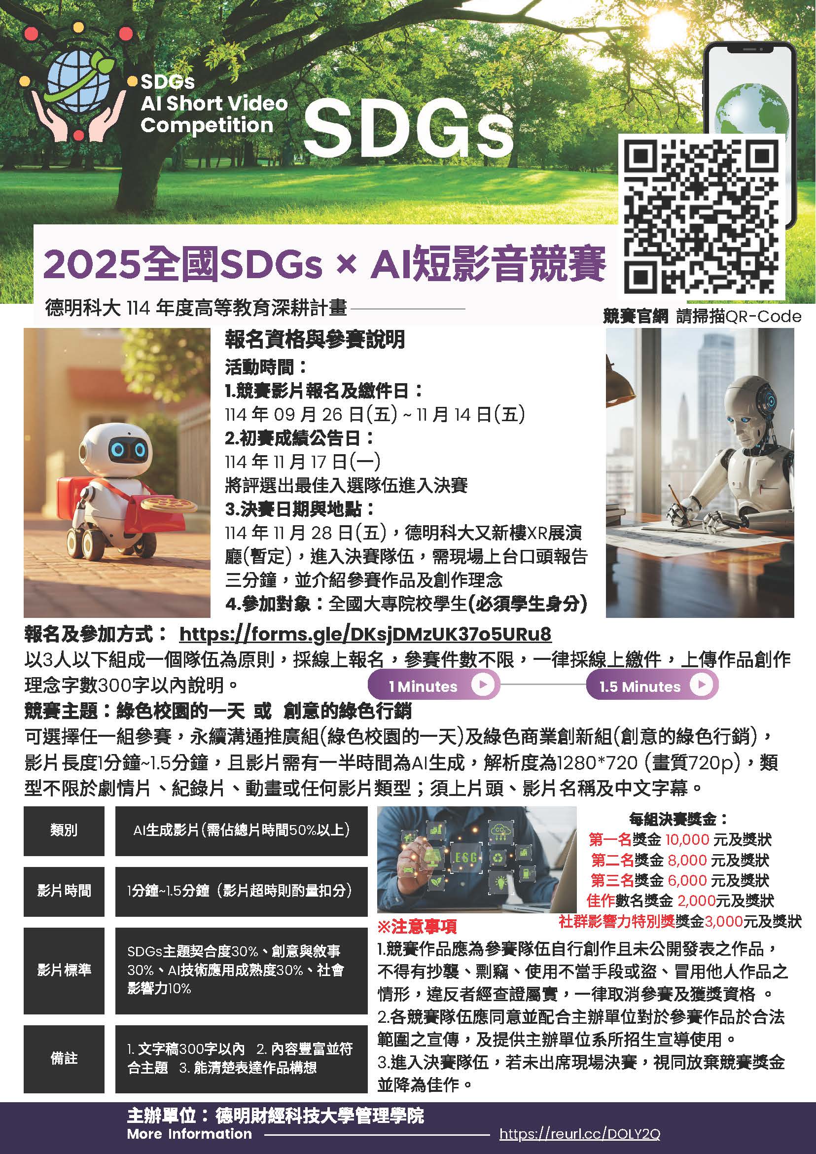 【活動競賽】2025全國大專校院SDGs×AI短影音競賽活動